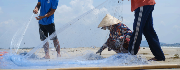 Discarded fishing nets are first collected in coastal communities in Vietnam, India and Indonesia. By repurposing discarded fishing nets, we actively help restore our ecosystems and significantly reduce ocean pollution. The less abandoned fishing gear in the ocean, the more animals can swim freely